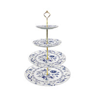 Jintch Bruiloft Decoratie Gouden Keramische Side Snack Platen Blauw Ontwerp Bone China Ontbijt Buffet Plaat Gerechten